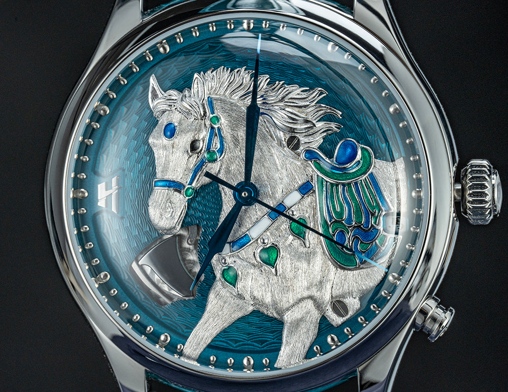 【Limited 100pcs】2026 Chiming Automaton Lucky Harvey Horse Watch Grade 5 Titanium Alloy Blue 骢(cōng)