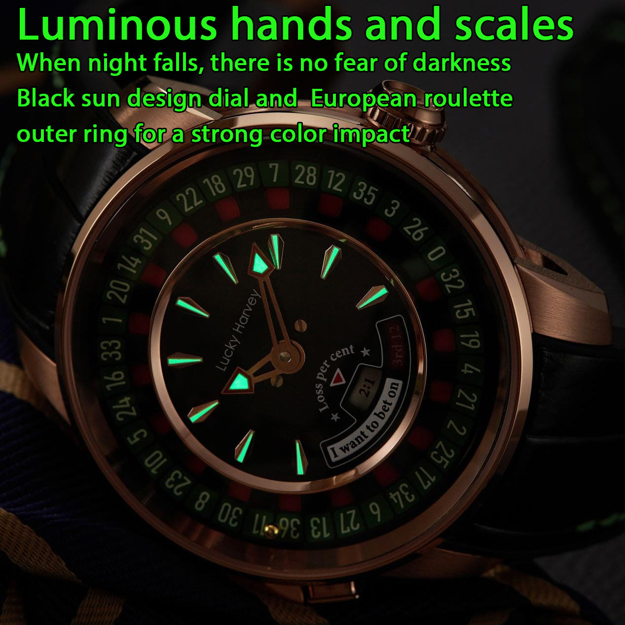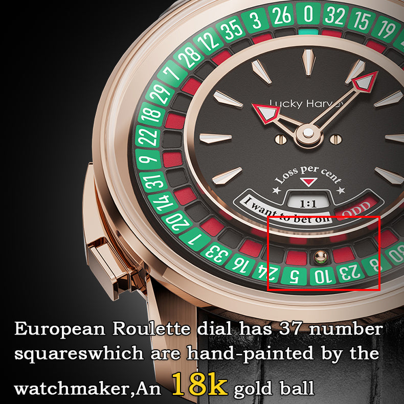 Reloj automático con ruleta europea dorada de la serie Player de Lucky Harvey
