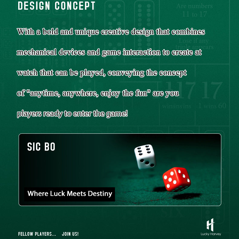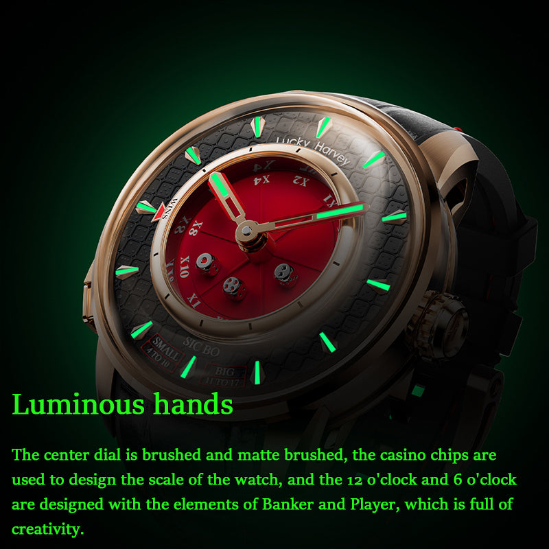 Reloj automático Sic Bo verde de la serie Player de Lucky Harvey