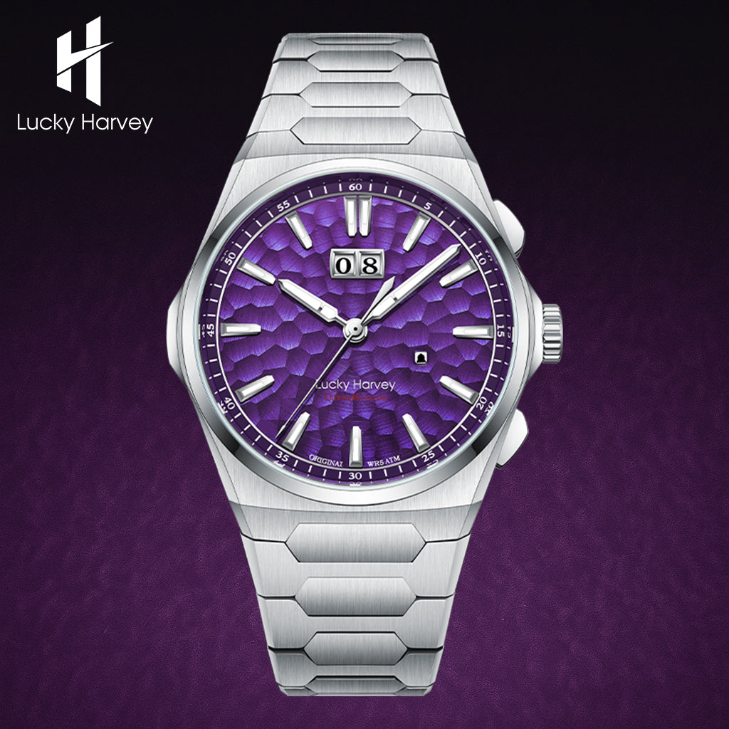 【Limited Edition 300pcs】Hammer Dial Big Date Automatic Winding Purple Chiming Watch Lucky Harvey
