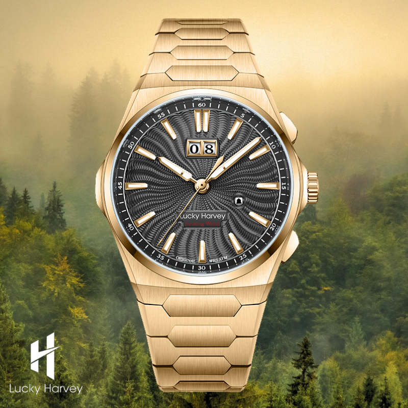 【Édition limitée】Sound Of Nature Montre automatique à cadran doré guilloché et grande date avec carillon Lucky Harvey