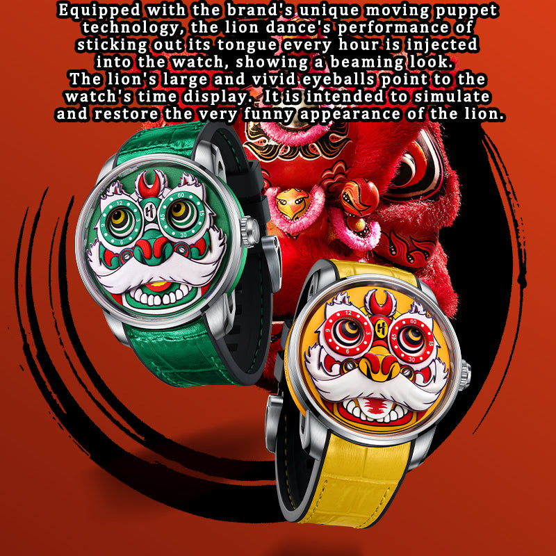 Artistic exaggeration reproduces the traditional lion dance's vivid and layered lion head shape through painting techniques and exquisite details. The colors are rich and rhythmic, the lines are smooth and the brushstrokes are delicate, presenting a cute and interesting lion head image full of national characteristics. Automatic winding rotor After exquisite polishing craftsmanship, it is designed into a classic lion dance movement. It echoes the innovative combination of traditional Chinese elements and timepieces in this product and represents Chinese culture's confidence and humanistic connotation.