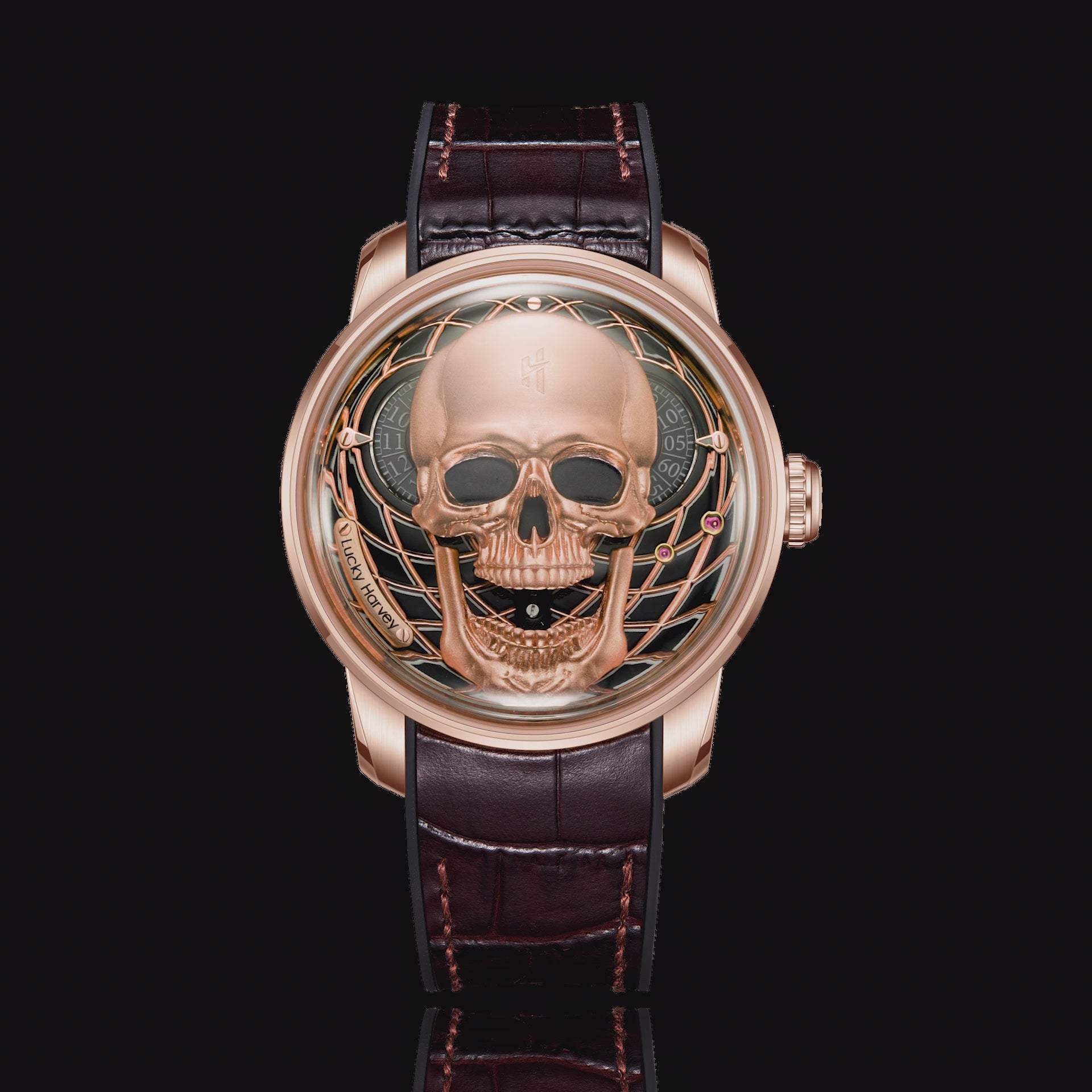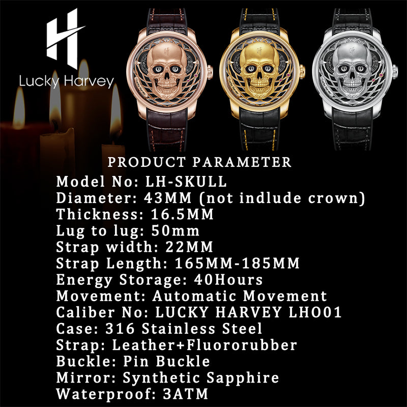 【Limited Edition 111pcs】Rose Gold Skull Automatic Mechanism Watch Lucky Harvey