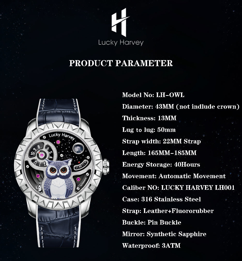 Silver Owl Automatic New Watch Luminous Dial Lucky Harvey